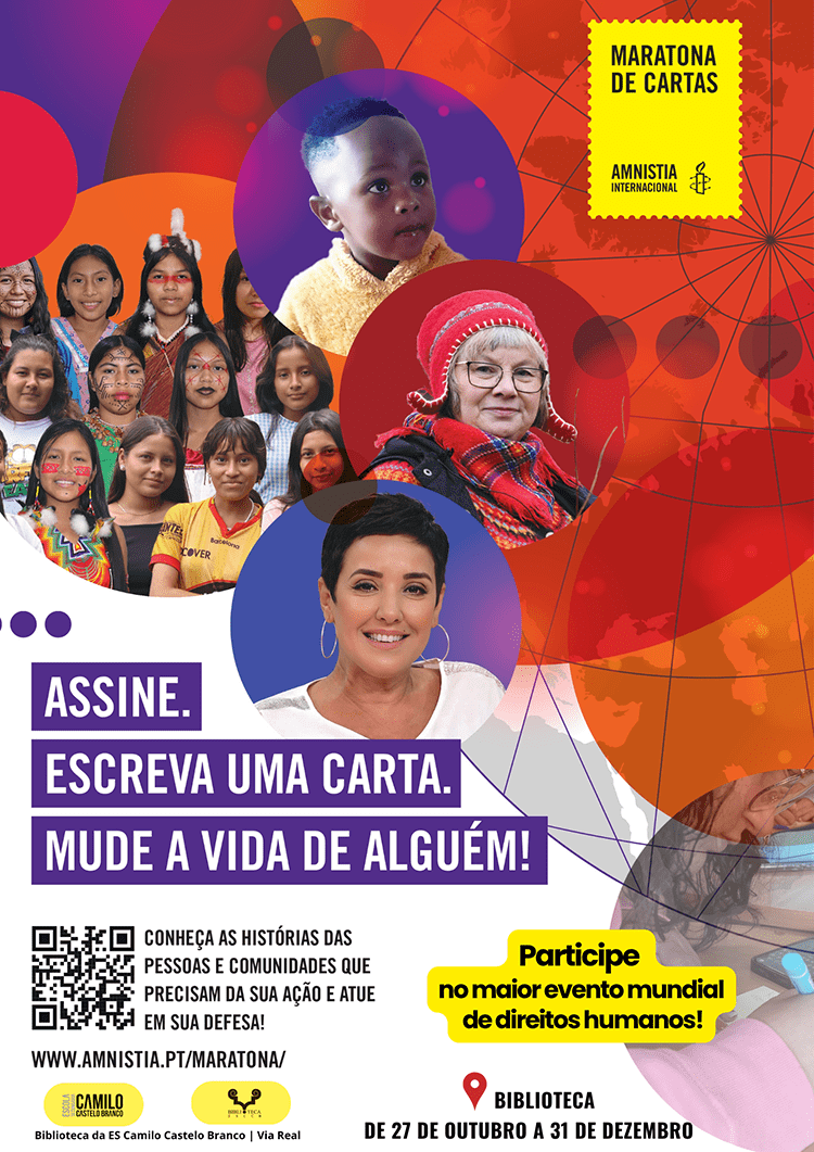 Na Escola Secundária Camilo Castelo Branco, a campanha decorre de 26 de outubro a 17 de dezembro de 2025. Este ano, a Amnistia destaca os casos de 4 pessoas e comunidades que precisam do nosso apoio: o coletivo Guerreiras pela Amazónia (Equador), a líder comunitária Ellinor Guttorm Utsi (Noruega), a defensora de direitos humanos Sonia Dahmani (Tunísia) e a família do pequeno Unecebo Mboteni (África do Sul).
